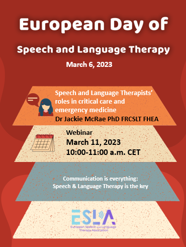 This year the European Speech and Language Therapy Association (ESLA) will be celebrating European Day of Speech and Language Therapy by holding a free online webinar event on Saturday the 11th of March, 2023 at 10 am CET. Registrations are open via the following link : https://www.eventbrite.com/e/537903723517