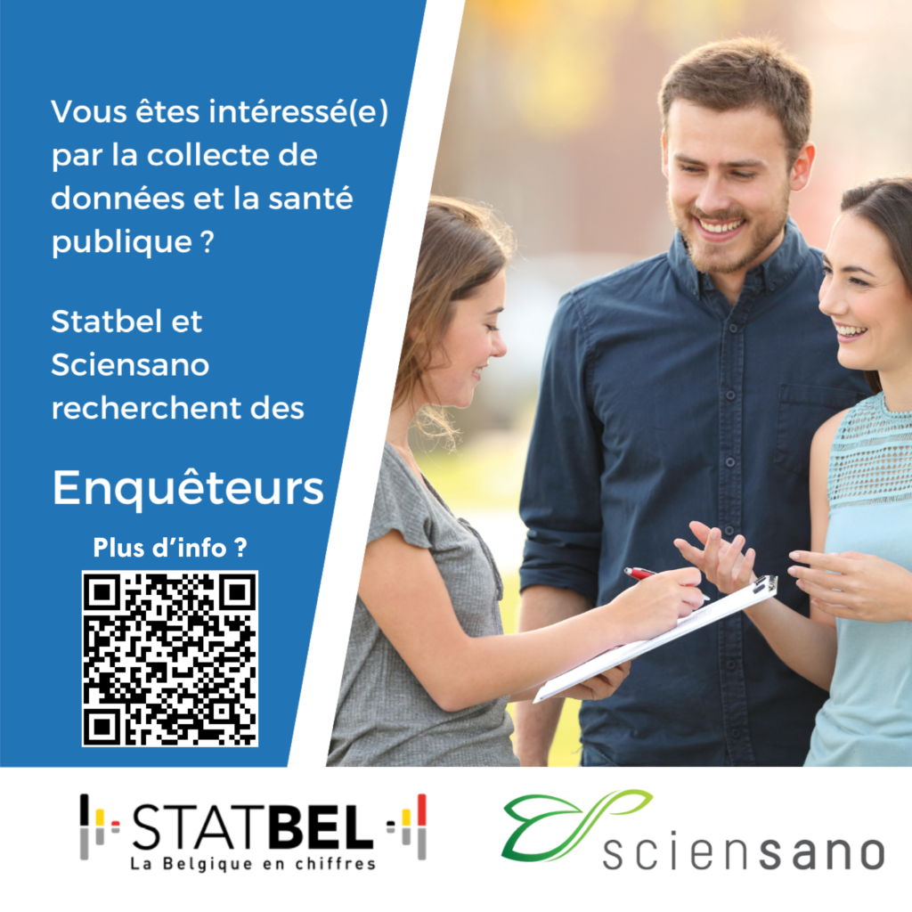 Cette enquête nationale porte sur la santé, les modes de vie et le recours aux soins de santé en Belgique. Les décideurs politiques utilisent les résultats de cette enquête épidémiologique à grande échelle pour améliorer les politiques de santé. Une collecte de données minutieuse est à la base d’une enquête réussie. Vous pouvez jouer un rôle dans ce domaine !