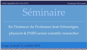 Accueil Actualités Séminaire de l’Unité Logopédie de la Voix (ULiège) Séminaire de l’Unité Logopédie de la Voix (ULiège) 9 septembre 20189 septembre 2018 Événements L’invitation et le programme complet sont ici